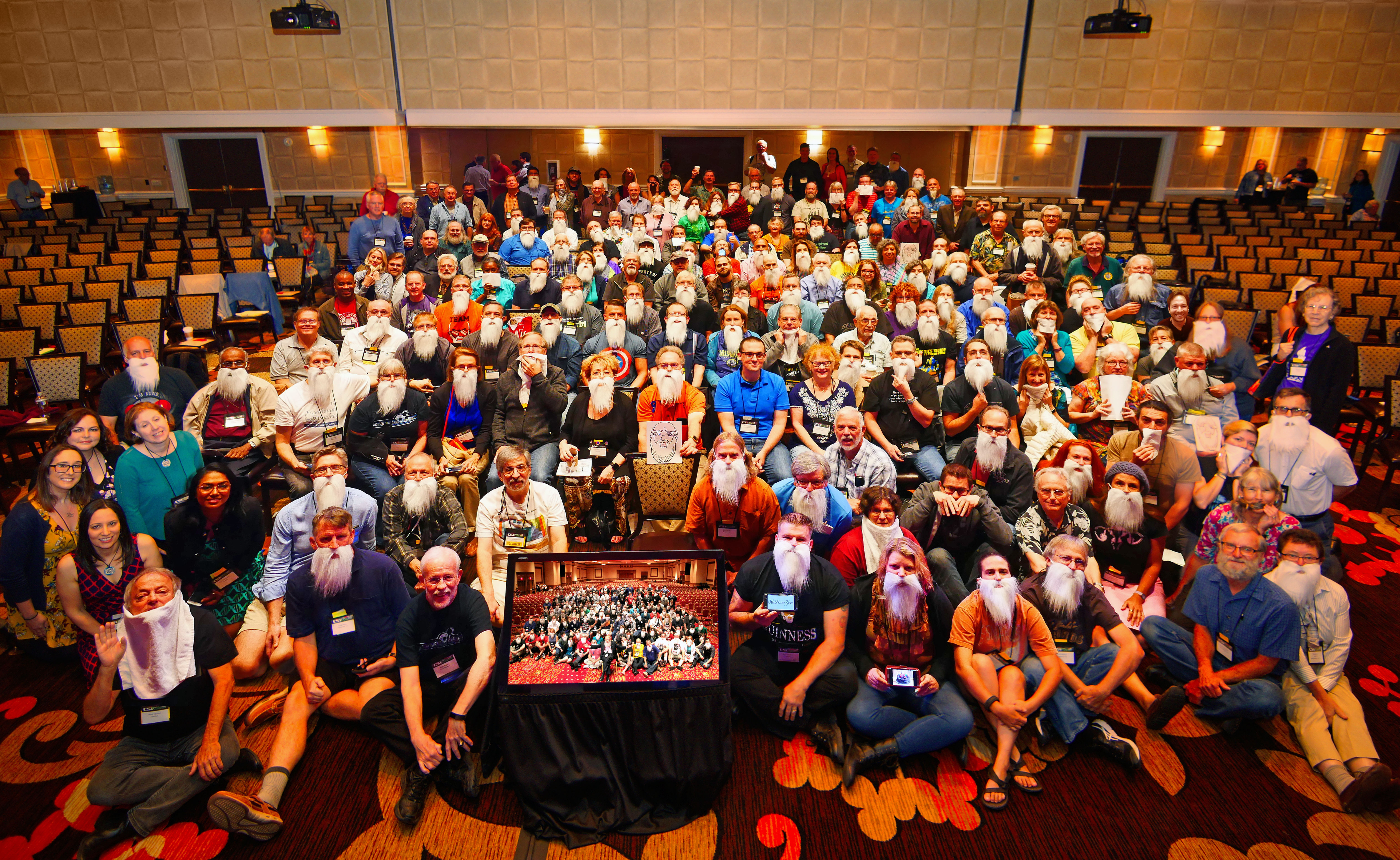 Six years later, 2017, the IIG found a few leftover Randi beards and was selling them at CSICon for $1 each. James Underdown suggested people meet in the conference area for a quick photo we would send to Randi. (Randi had been unable to attend CSICon due to health reasons). Our emcee George Hrab announced the day, time and location and suggested if you didn’t have a beard to use something that might look like a beard, a white washcloth or white napkin.