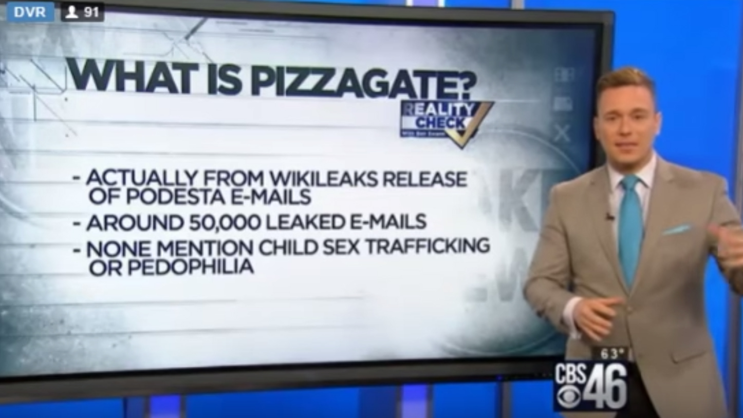 Pizzagate, the conspiracy theory—based on John Podesta’s leaked emails—that claims a popular Washington, D.C. pizzeria hosts a pedophilia ring (not unlike the alleged pedo rings of the 1980s Satanic Panic) has resurfaced. This time it is put forward by investigative reporter Ben Swann, who works at a CBS news affiliate in Atlanta. In February 2011, when I lived in Atlanta, the CBS station aired a story by Jeff Chirico about chemtrails that prompted literally thousands of emails and photos from viewers around the world. In the wake of that unexpectedly vigorous reaction, the editors explored more stories with a conspiratorial bent. I know this because when I read about the reaction, I asked if I could have access to the emails. I met the reporter, and we had a discussion about conspiracy theories and I ended up in a short piece about the Georgia Guidestones, along with researcher Raymond Wiley, which aired in May of 2011. So, when I heard that a new video was circulating from CBS46 about Pizzagate, I was not necessarily surprised, but the tone of this one was much different.