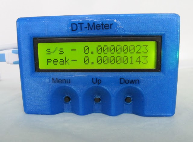 Below is an image of a typical reading from a DT meter reproduced from the device’s promotional material. You’ll notice from the display that the device doesn’t sit at a reading of 0.000000000. There is, as should be expected, a little bit of noise caused by an expected amount of interference that causes the clock not to be perfectly synchronized. Noise is defined as anything that alters the sensitivity of a piece of measuring equipment. In the case of this device it’s our experimental error (4).