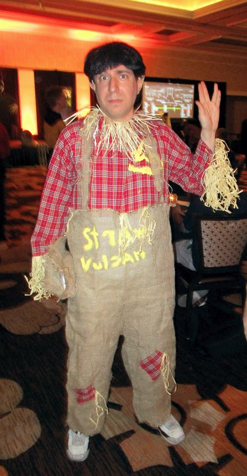 I never spend the exorbitant amounts of time on my costumes necessary to win any major awards at Dragon Con: The competition includes real pros who make costumes for a living! But I don’t throw together anything that is too shabby to at least try to stand out, in some way, at the Con, either. I think that small level of motivation gives me an advantage at CSICon: It is small enough of a crowd that my “barely stands out by Dragon Con standards” effort can really stand out at CSICon! And, it is tight-knit enough that I can take advantage of the local memes. I think that is one of the reasons my Straw Vulcan costume (which I only wear to skeptical conferences) was so well praised.